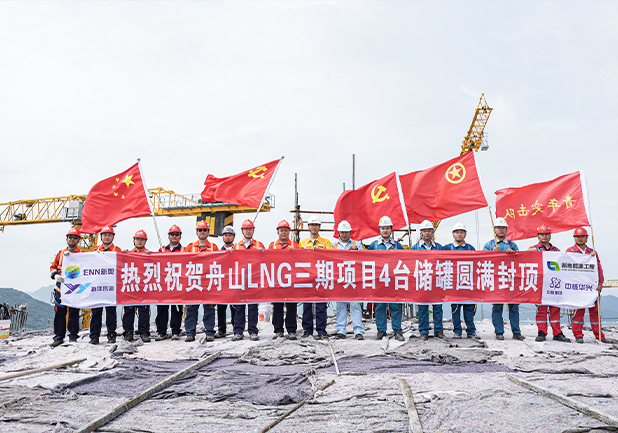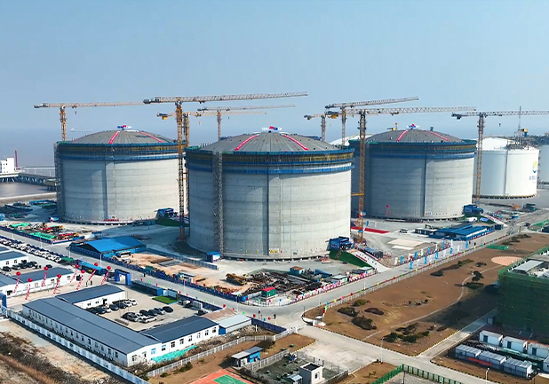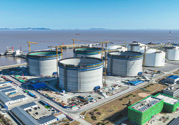 The ENN Zhoushan LNG Receiving Terminal is the first large-scale LNG receiving terminal invested and developed by a private enterprise approved by the National Energy Administration. The project phase III of the project involves the construction of four 220,000 cubic meter LNG storage tanks.Construction of working piles of the tanks began on March 8, 2023, with a total construction period of 29 months, which was 4 months ahead of schedule and has broken the industry record for tank construction during the same period. It aims to create a exemplary project that is green, low-carbon, safe, reliable, efficient, and finely managed.